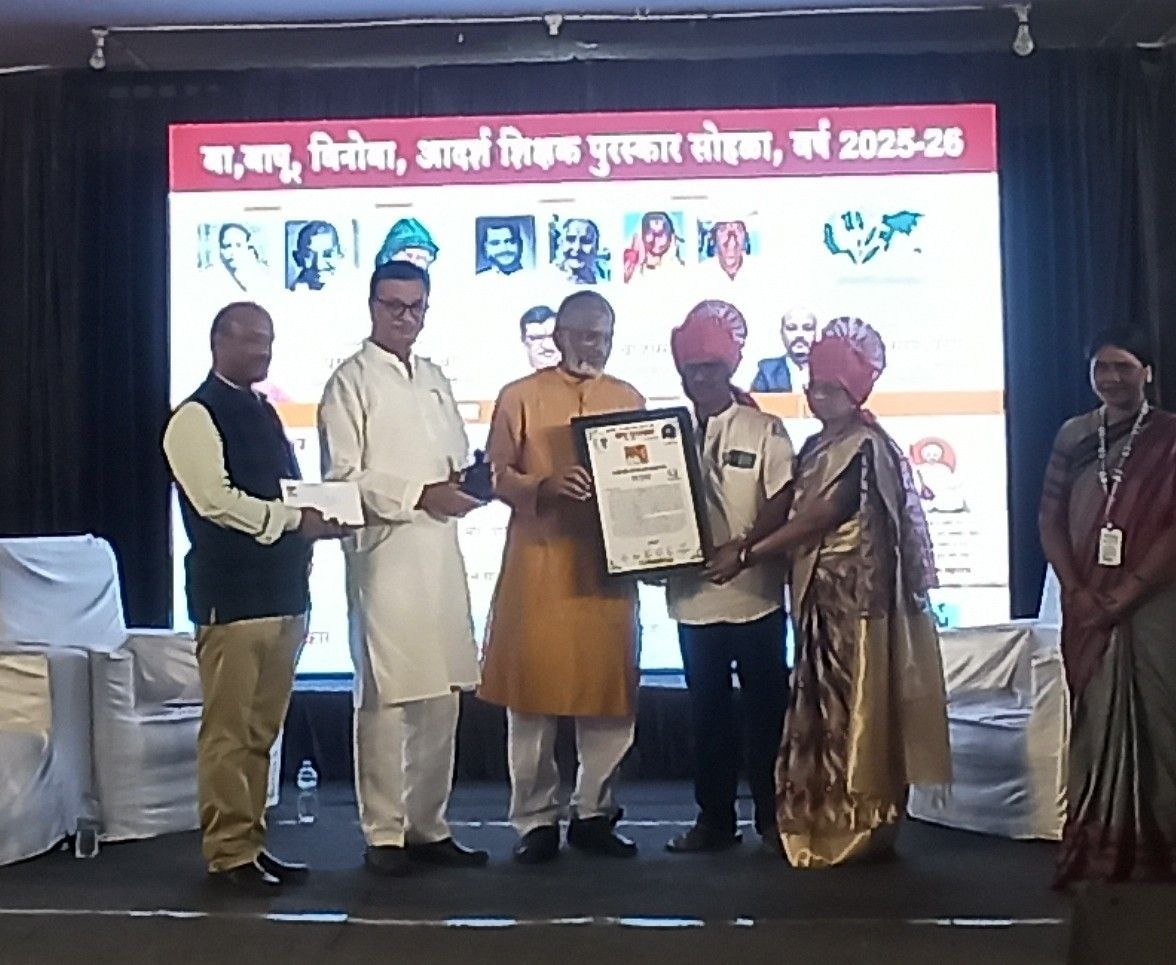 स्वातंत्र्य सैनिक आणि महाराष्ट्र राज्यातील चारित्र्य संपन्न माजी आमदार श्यामकांत दामोदर मोरे यांच्या जन्म शताब्दी च्या निमित्ताने बा,बापू आणि विनोबा तसेच स्व. इंदिराबाईं मोरे पुरस्कृत आदर्श शिक्षक हे पुरस्कार देण्यात आले.